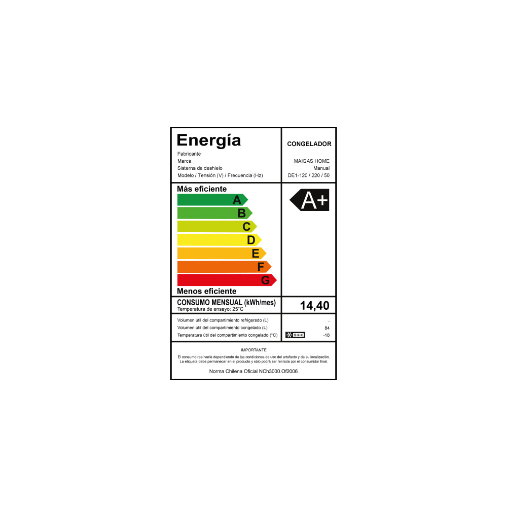 - Consumo Energético: 14,4 kWh / mes