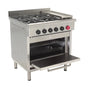 Cocina industrial 5 platos 1 horno GLP "Construcción robusta, parrillas de fierro fundido, quemadores industriales de alta eficiencia y horno con ladrillo refractario para una cocción pareja. Funcionamiento a Gas Licuado". (GLP)