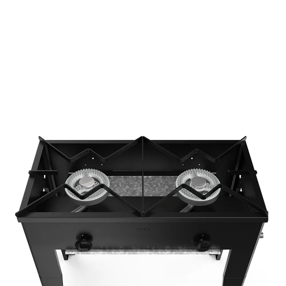 Producto certificado.– Color negro.– 2 válvulas de seguridad italiana certificadas.– Quemadores industriales fabricados en Chile.– Sistema de seguridad – termocupla.– Estructura de acero laminado en frío con aplicación de pintura electrostática.